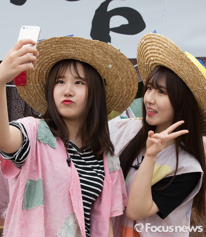 (음성=포커스뉴스) 26일 충북 음성군 음성읍 설성공원 일원에서 제17회 음성 품바축제가 열린 가운데 여학생들이 품바의상을 입고 셀카를 찍고있다.