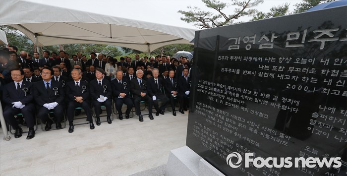 (서울=포커스뉴스) 고(故) 김영삼 전 대통령의 묘비 제막식이 26일 서울 동작구 국립현충원에서 거행됐다.