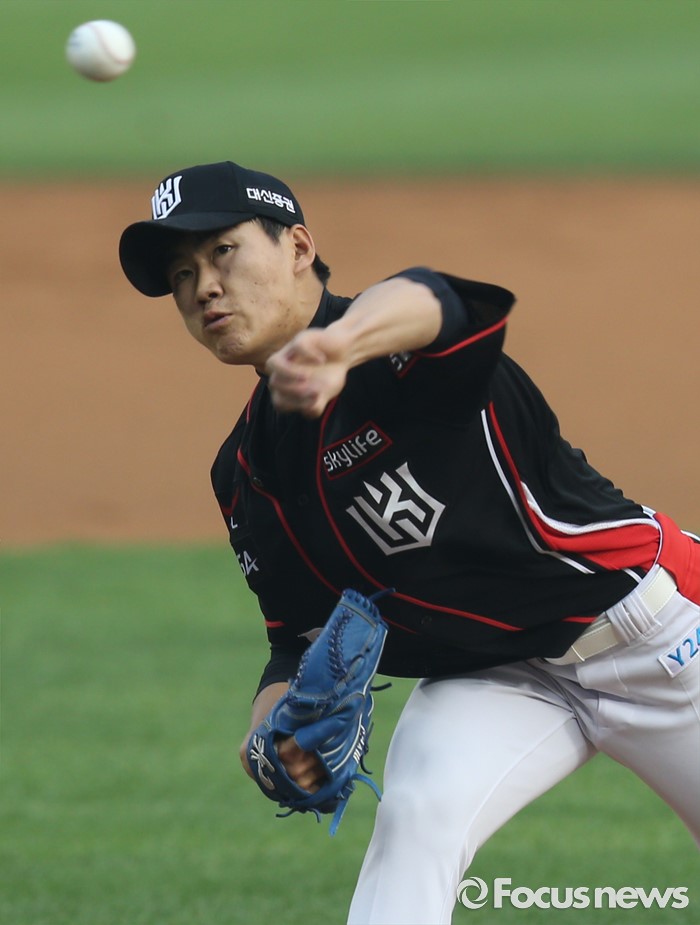△ 힘차게 공을 던지는 kt 선발 정성곤의 투구
