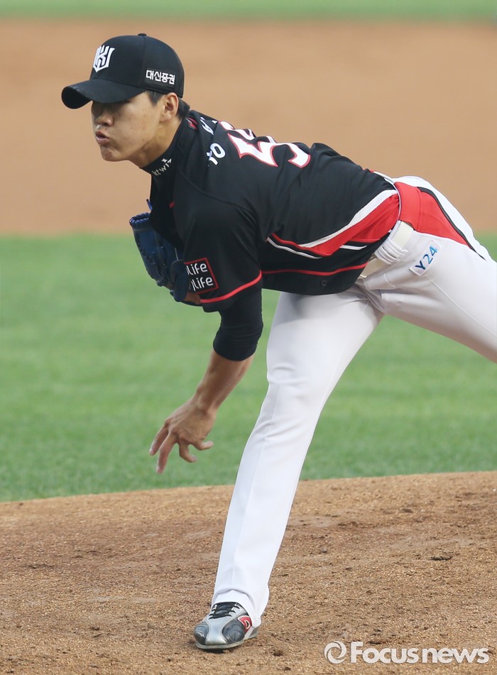 힘차게 공을 던지는 kt 선발 정성곤의 투구