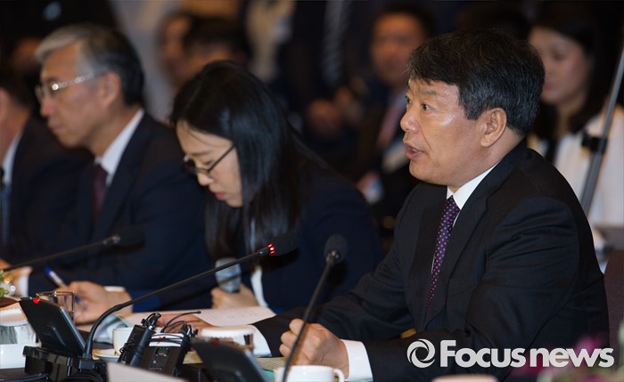 (서울=포커스뉴스) 쉬 사오스(오른쪽) 중국 국가발전개혁위원회 주임이 27일 오전 서울 중구 신라호텔 영빈관에서 열린 제14차 한중경제장관회의에 참석해 인사말을 하고 있다.