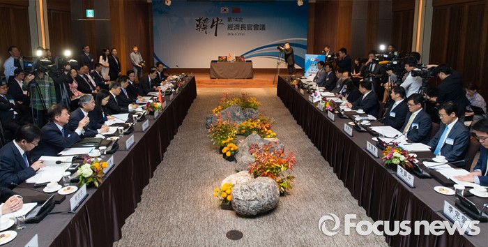 (서울=포커스뉴스) 유일호 경제부총리 겸 기획재정부 장관과 쉬 사오스 중국 국가발전개혁위원회 주임 등 참석자들이 27일 오전 서울 중구 신라호텔 영빈관에서 열린 제14차 한중경제장관회의에 참석하고 있다.