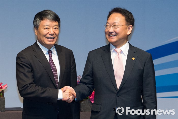 (서울=포커스뉴스) 유일호(오른쪽) 경제부총리 겸 기획재정부 장관과 쉬 사오스 중국 국가발전개혁위원회 주임이 27일 오전 서울 중구 신라호텔 영빈관에서 열린 제14차 한중경제장관회의에 참석해 악수하고 있다.