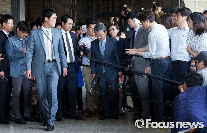 (서울=포커스뉴스) 정운호 네이처리퍼블릭 대표 로비 의혹에 연루된 홍만표 변호사가 27일 오전 서울중앙지방검찰청으로 출석하고 있다.