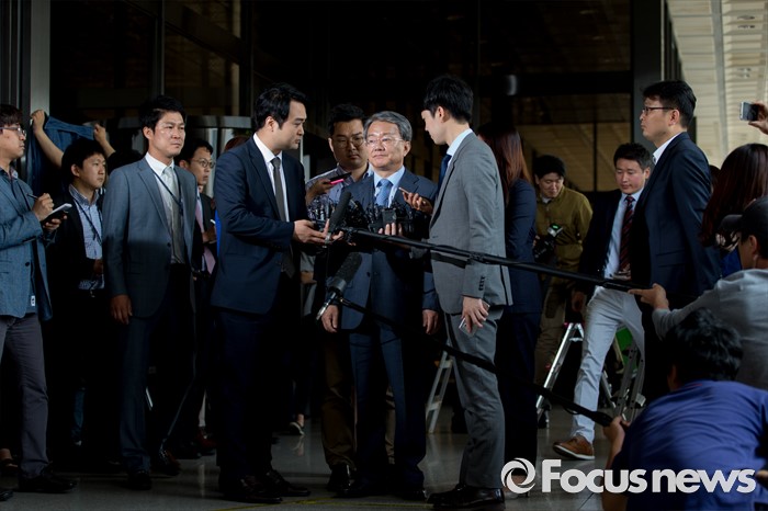 (서울=포커스뉴스) 정운호 네이처리퍼블릭 대표 로비 의혹에 연루된 홍만표 변호사가 27일 오전 서울중앙지방검찰청으로 출석하고 있다.