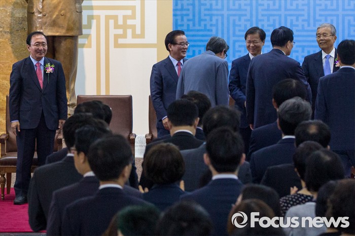 (서울=포커스뉴스) 정의화 국회의장이 27일 오전 서울 여의도 국회에서 열린 '제68주년 국회 개원 기념식'에 참석해 인사말을 하고 있다. 이날 정 의장은 헌법-국회관계법 책을 손에 들고 국회법 개정안에 대해 대통령의 거부권 행사에 대한 입장을 밝혔다.