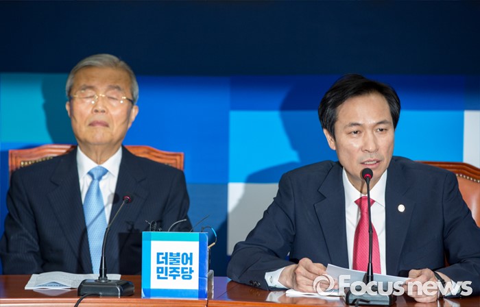 (서울=포커스뉴스) 우상호 더불어민주당 원내대표가 27일 오전 서울 여의도 국회에서 열린 비상대책위원회의에 참석해 모두발언 하고 있다.