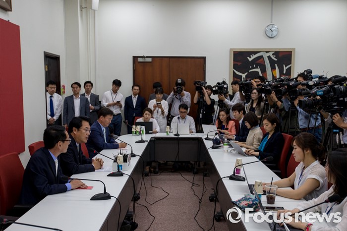 (서울=포커스뉴스) 정진석 새누리당 원내대표가 27일 오전 서울 여의도 국회에서 국회법 개정안 관련 대통령 거부권 행사 및 당 조직구성에 대한 야당의 입장발표에 대해 발언 하고 있다.