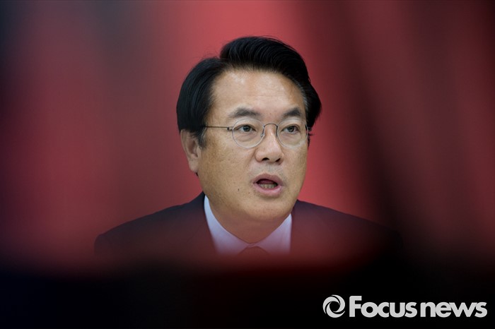 (서울=포커스뉴스) 정진석 새누리당 원내대표가 27일 오전 서울 여의도 국회에서 국회법 개정안 관련 대통령 거부권 행사 및 당 조직구성에 대한 야당의 입장발표에 대해 발언 하고 있다.