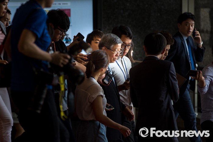 (서울=포커스뉴스) 김희옥 새누리당 비상대책위원장 내정자가 27일 오전 서울 여의도 국회에서 정진석 새누리당 원내대표와 상견례를 마친 뒤 본청을 나서고 있다.
