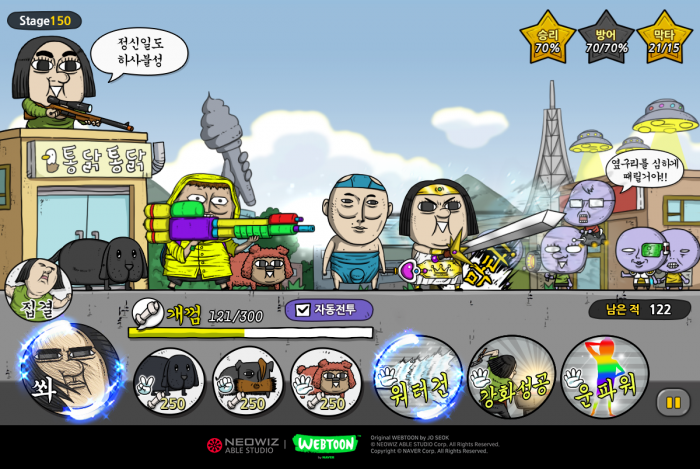 한편 네오위즈게임즈는 업데이트와 함께 오픈 한 달을 맞아 다양한 게임내 이벤트를 진행한다. 오는 29일까지 게임에 접속만해도 하루 4번 게임머니, 룬 레전드팩, 비비탄 등 게임아이템을 비롯, 경험치 및 골드 부스터 15장 등의 푸짐한 선물을 증정하며, 25~29일까지 연속 5일 출석할 시에는 '히어로 레전드팩+1 뽑기권 1장'을 추가로 제공한다.마음의 소리 with 네이버 웹툰 <사진제공=네오위즈게임즈>