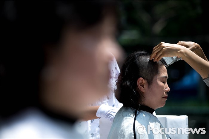 | △ '삭발식 4일째, 오늘도 어머니들은 삭발을 합니다' |