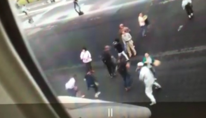 (서울=포커스뉴스) 27일 오후 일본 도쿄 하네다 공항에서 이륙을 준비하던 대한항공 항공기의 왼쪽 날개 부근에서 화재가 발생해, 승객과 승무원들이 비행기를 탈출, 긴급 대피하고 있다. 사고기는 도쿄에서 서울로 가는 대한항공 2708편으로, 승객과 승무원 319명은 모두 무사한 것으로 알려졌다.<사진=NHK 화면캡쳐>