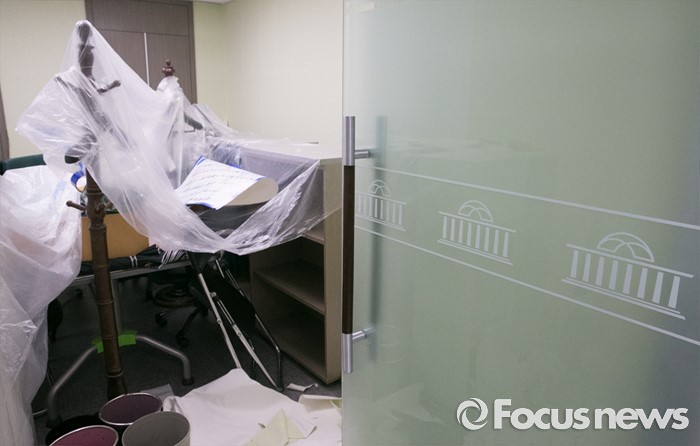 (서울=포커스뉴스) 20대 국회 개원을 사흘 앞둔 27일 오후 서울 여의도 국회 의원회관 한 의원실에서 업체 관계자들이 내부공사를 하고 있다.