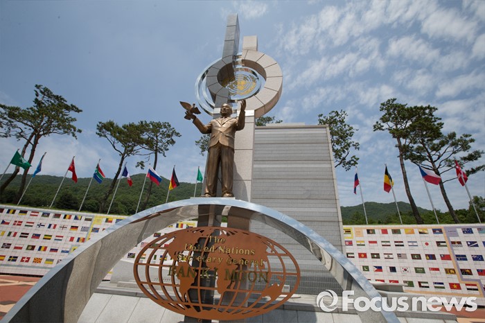 (음성=포커스뉴스) 27일 오후 충북 음성군 원남면 반기문 UN사무총장 생가 옆에 조성된 평화랜드에 반 총장의 동상이 설치되어 있다.