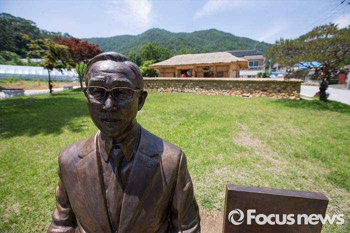 (음성=포커스뉴스) 27일 오후 충북 음성군 원남면 반기문 UN사무총장 생가 앞에 동상이 설치되어 있다.