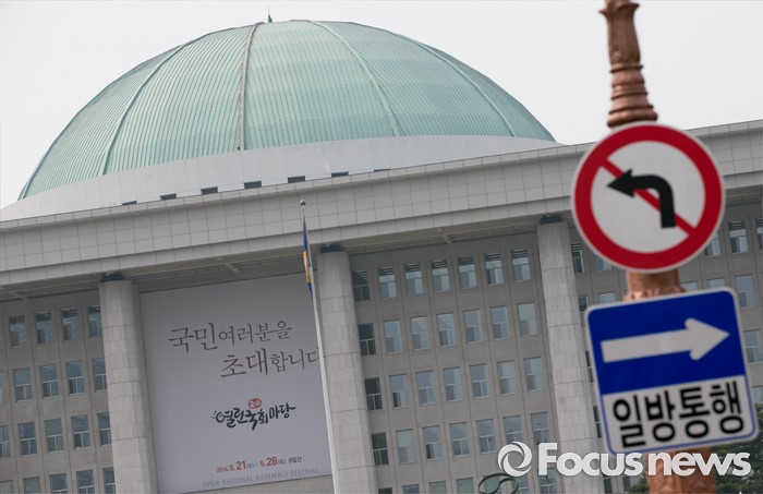 (서울=포커스뉴스) 정부가 상시 청문회 등의 내용이 포함된 국회법 개정안에 대해 거부권을 행사해 여야가 입장 차이를 보이고 있는 27일 오후 서울 여의도 국회 경내에 도로이정표가 보이고 있다.