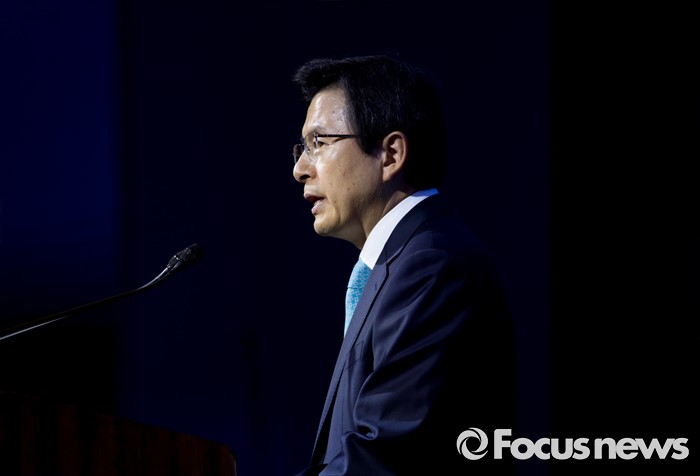 (서울=포커스뉴스) 27일 오후 서울 웨스틴 조선호텔에서 열린 2016 한반도통일 심포지엄에 참석한 황교안 국무총리가 축사를 하고 있다.