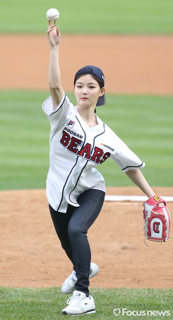 (서울=포커스뉴스) 27일 서울 잠실구장에서 열린 2016 프로야구 LG-두산 경기에 앞서 배우 김유정이 시구하고 있다.