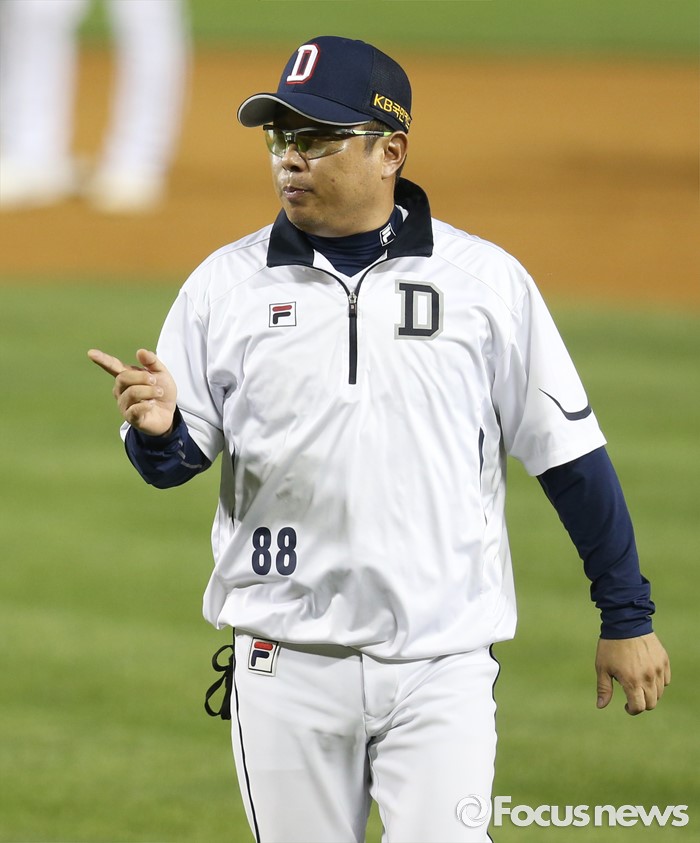 (서울=포커스뉴스) 27일 서울 잠실구장에서 열린 2016프로야구 LG-두산 경기에서 7회초 두산 김태형 감독이 2루심의 판정에 대해 항의하고 있다.