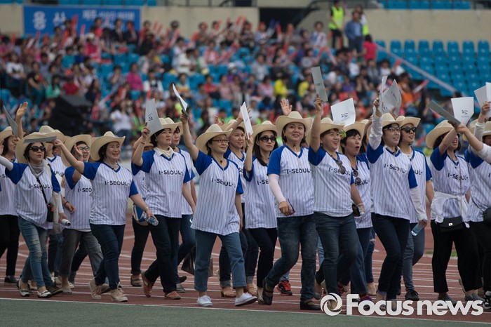 (서울=포커스뉴스) 2016 전국생활체육대축전 개막식이 열린 27일 오후 서울 송파구 잠실 올림픽주경기장에서 개막 축하 퍼레이드가 진행되고 있다.