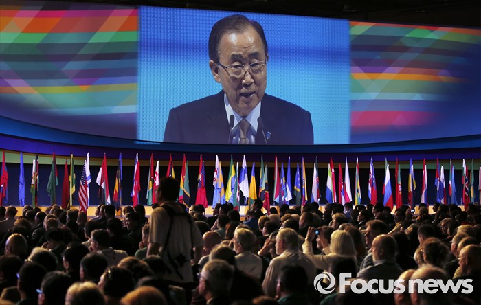 (서울=포커스뉴스) 반기문 유엔 사무총장이 29일 오전 경기 고양시 킨텍스 제1전시장에서 열린 2016 국제로타리 세계대회에 참석해 기조연설 하고 있다.