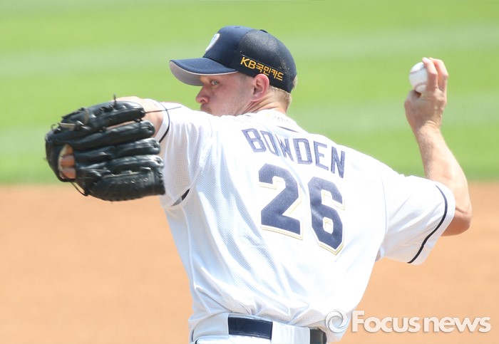 (서울=포커스뉴스) 29일 서울 잠실구장에서 열린 2016프로야구 LG-두산 경기에서 1회초 두산 선발투수 보우덴이 투구하고 있다.