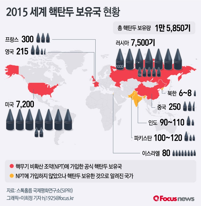 | △ [그래픽] 2015 세계 핵탄두 보유국 현황 |