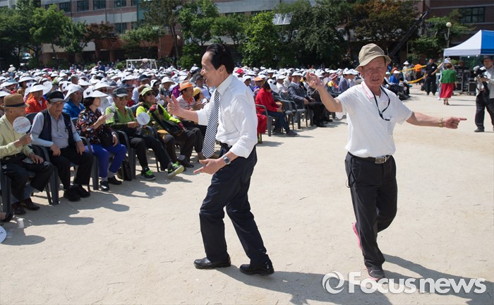 (서울=포커스뉴스) 29일 오후 서울 종로구 교동초등학교에서 열린 '2016 효자손 어르신 대축제'를 찾은 어르신들이 춤을 추고 있다.