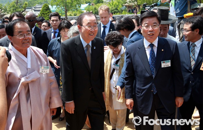 (안동=포커스뉴스) 반기문 유엔 사무총장이 29일 오후 경북 안동시 하회마을을 둘러보고 있다.