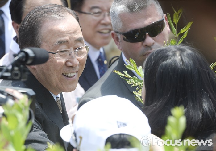 (안동=포커스뉴스) 29일 오후 경북 안동 하회마을을 방문한 반기문 유엔 사무총장이 시민들과 인사하고 있다.