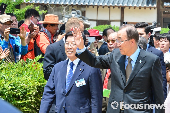 | △ 시민들에게 인사하는 반기문 유엔 사무총장 |