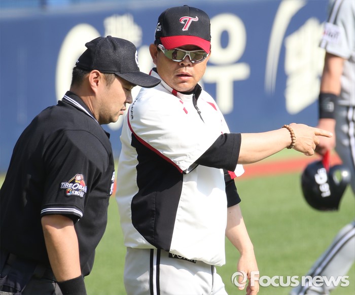 (서울=포커스뉴스) 29일 서울 잠실구장에서 열린 2016프로야구 LG-두산 경기 6회초 LG 양상문 감독이 오지환의 도루 아웃 판정에 항의하고 있다.