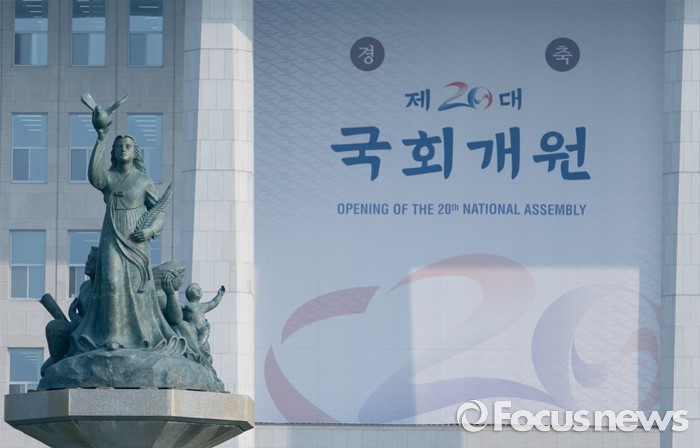(서울=포커스뉴스) 20대 국회 임기가 시작된 30일 오전 서울 여의도 국회 본청에 개원을 알리는 현수막이 걸려 있다.