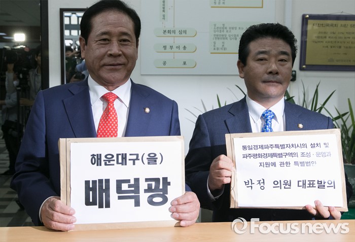 (서울=포커스뉴스) 20대 국회 임기가 시작된 30일 오전 서울 여의도 국회 의안과에서 배덕광 새누리당 의원(2호 법안), 박정 더불어민주당 의원(1호 법안)이 각각 법안 서류를 제출하고 있다.