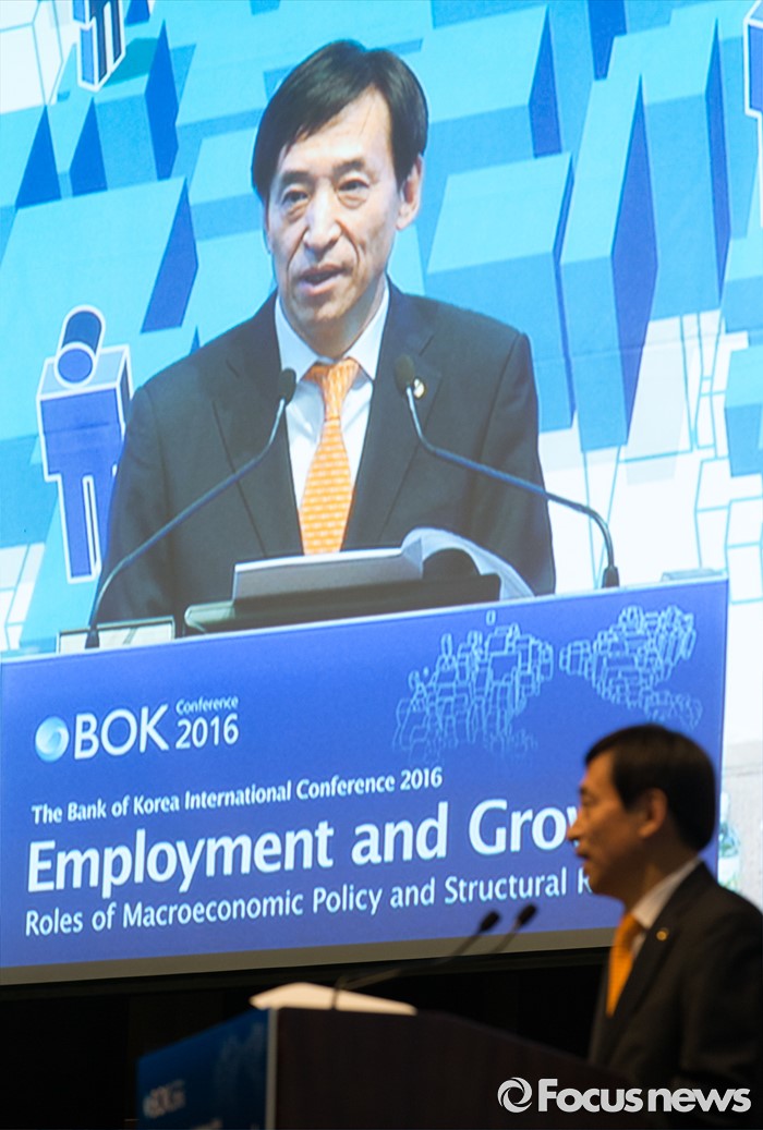 (서울=포커스뉴스) 30일 오전 서울 중구 웨스틴조선호텔에서 열린 2016 한국은행 국제컨퍼런스에서 이주열 한국은행 총재가 개회사를 하고 있다.