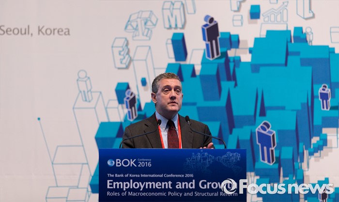 (서울=포커스뉴스) 30일 오전 서울 중구 웨스틴조선호텔에서 열린 2016 한국은행 국제컨퍼런스에서 제임스 불라드 세인트루이스 연은 총재가 기조연설을 하고 있다.