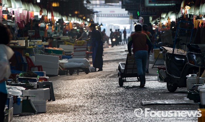 (서울=포커스뉴스) 30일 오전 서울 동작구 구 노량진수산시장에서 서울중앙지법 관계자들이 법원의 점유이전금지가처분을 집행한 가운데 상인들이 영업을 이어가고 있다. 법원은 이날 영업은 지속하되 수협의 동의없이 가게를 타인에게 이전·전대하면 안된다고 상인들에게 통보 했다.