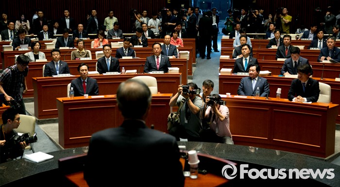(서울=포커스뉴스) 20대 국회 임기가 시작된 30일 오전 서울 여의도 국회에서 열린 더불어민주당 의원총회에 참석한 의원들이 김종인 비대위 대표의 모두발언을 듣고 있다.