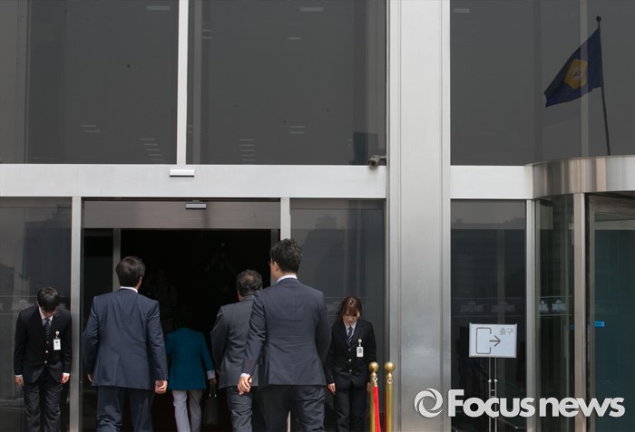 (서울=포커스뉴스) 20대 국회 임기가 시작된 30일 오전 서울 여의도 국회에서 의원들이 각 당 의원총회에 참석하기 위해 본청으로 들어서고 있다.