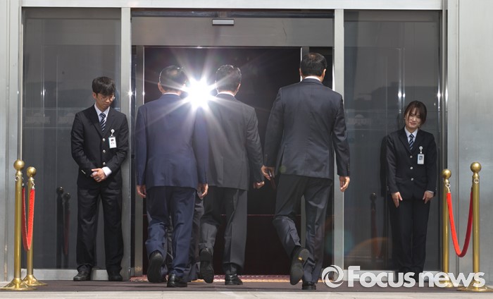 (서울=포커스뉴스) 20대 국회 임기가 시작된 30일 오전 서울 여의도 국회에서 의원들이 각 당 의원총회에 참석하기 위해 본청으로 들어서고 있다.