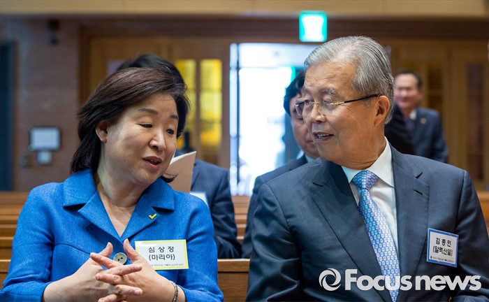 (서울=포커스뉴스) 김종인(오른쪽) 더불어민주당 비상대책위 대표와 심상정 정의당 상임대표가 30일 오전 서울 중구 명동성당에서 열린 '국회의원 카톨릭 교우회 감사 미사'에 참석해 대화를 나누고 있다.