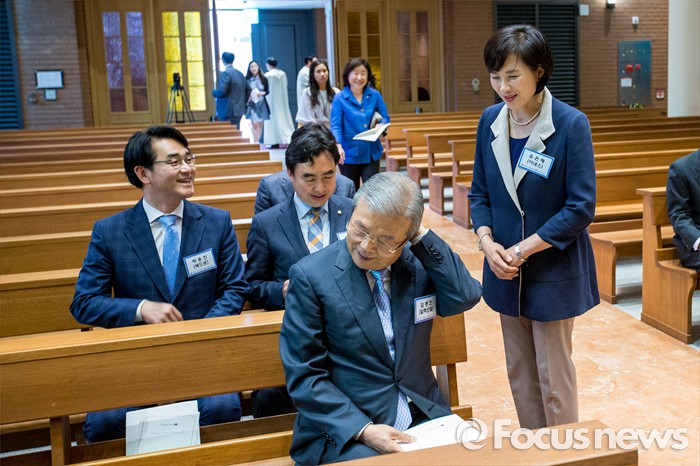 (서울=포커스뉴스) 김종인(앞줄 왼쪽) 더불어민주당 비상대책위 대표와 심상정(뒤 파란색 상의) 정의당 상임대표가 30일 오전 서울 중구 명동성당에서 열린 '국회의원 카톨릭 교우회 감사 미사'에 참석 하고 있다.