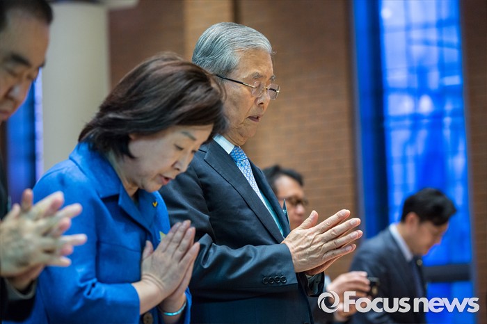 (서울=포커스뉴스) 김종인(왼쪽 세 번째) 더불어민주당 비상대책위 대표와 심상정(왼쪽 두 번째) 정의당 상임대표가 30일 오전 서울 중구 명동성당에서 열린 '국회의원 카톨릭 교우회 감사 미사'에 참석 하고 있다.