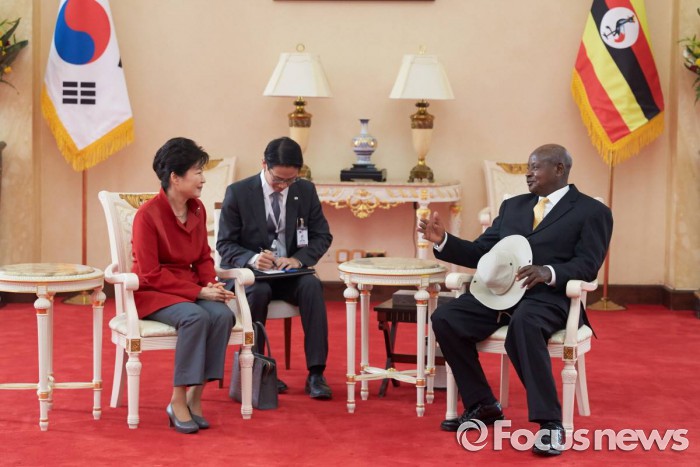 박 대통령은 29일(현지시간) 오전 요웨리 무세베니 우간다 대통령과 사전환담 및 정상회담을 갖고 △양국관계 평가 및 발전 방향 △개발협력 △인프라·에너지 △과학기술·ICT 협력 △문화·교육 협력 △한반도 문제 등에 대한 의견을 교환했다.