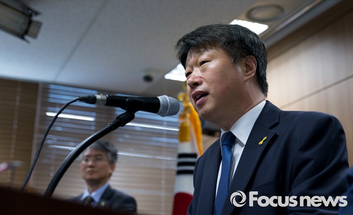 (서울=포커스뉴스) 30일 오후 서울 중구 4·16세월호참사 특별조사위원회에서 권영빈 세월호특조위 진상규명 소위원장이 기자회견 후 취재진 질문에 답하고 있다.