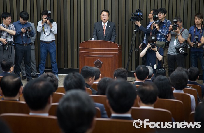 (서울=포커스뉴스) 정진석 새누리당 원내대표가 30일 오전 서울 여의도 국회에서 열린 의원총회에서 발언하고 있다.