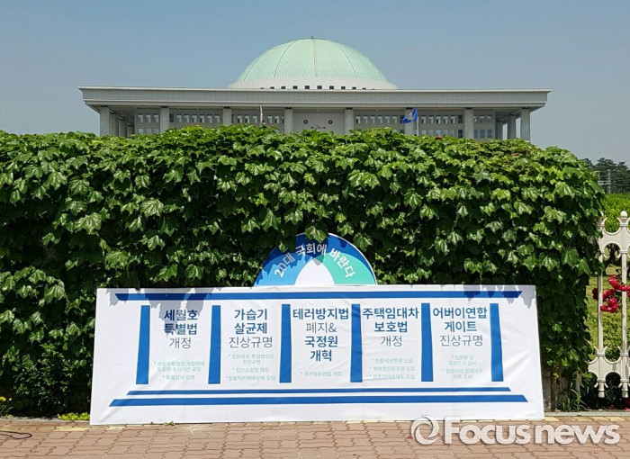 리멤버0416의 한 관계자는 "평소에도 1인 시위를 해왔지만 20대 국회가 시작하는 날이라 많은 분들이 함께 했다"며 "이번 국회에서는 세월호 특별법이 꼭 개정돼 진실이 밝혀졌으면 한다"고 말했다.