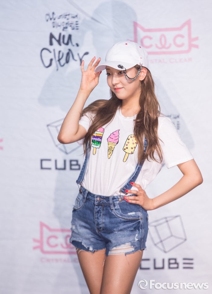 (서울=포커스뉴스) 30일 오후 서울 마포구 롯데카드 아트센터에서 열린 걸그룹CLC의 미니앨범 '뉴 클리어(NU.CLEAR) ' 발표 쇼케이스에 참석한 멤버 장승연이 포토타임을 갖고 있다.