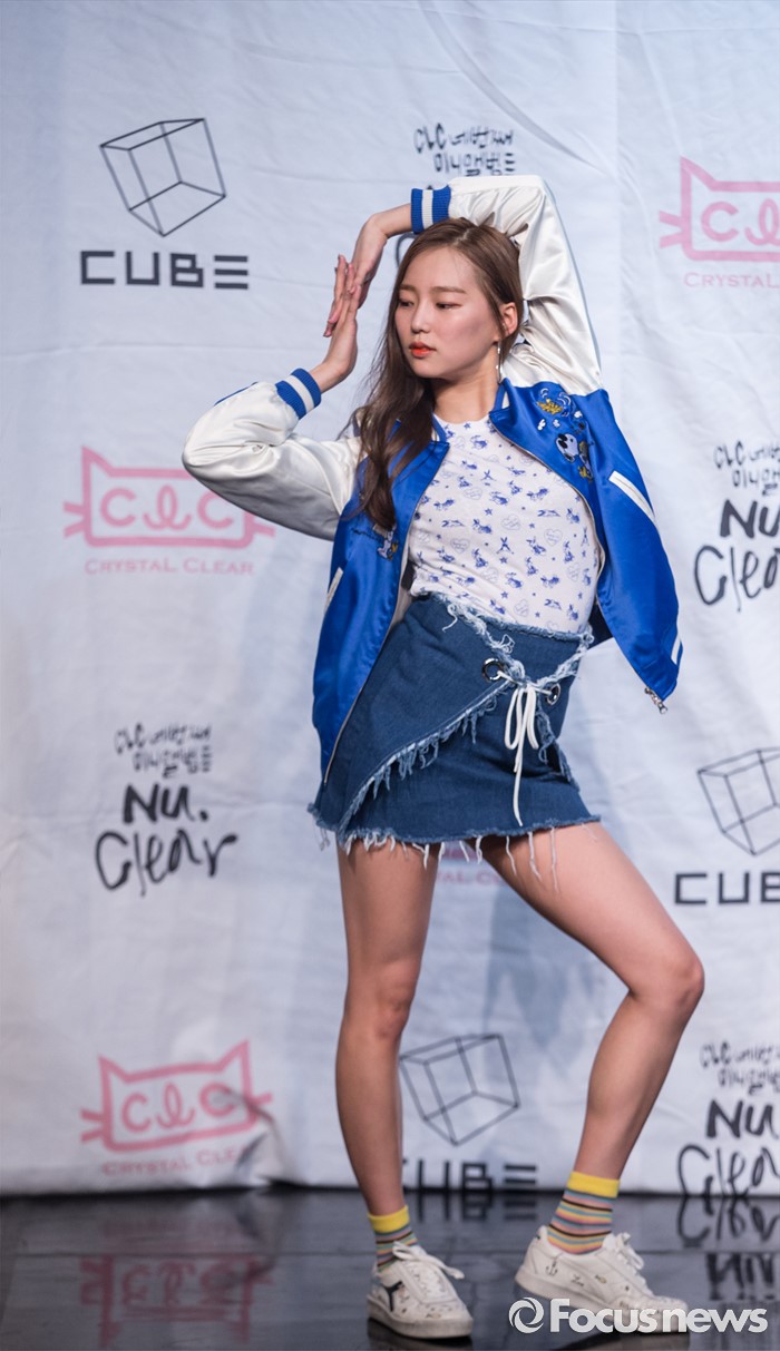 (서울=포커스뉴스) 30일 오후 서울 마포구 롯데카드 아트센터에서 열린 걸그룹CLC의 미니앨범 '뉴 클리어(NU.CLEAR) ' 발표 쇼케이스에 참석한 멤버 장예은이 포토타임을 갖고 있다.